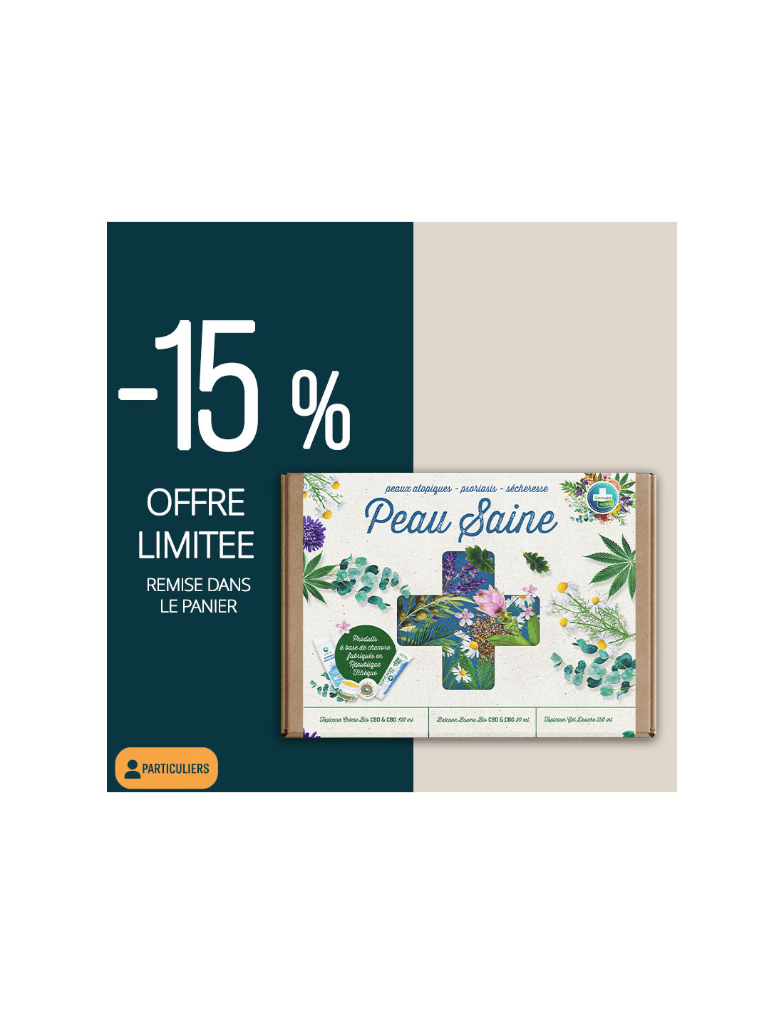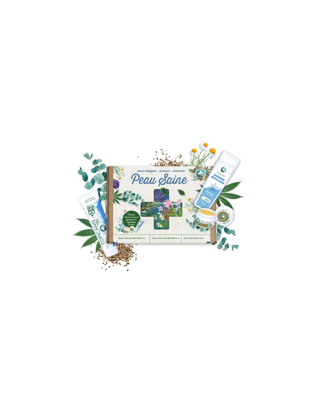 Le Coffret Peau Saine Annabis est conçu pour répondre aux besoins des peaux les plus exigeantes, qu'elles soient sèches, irritées ou sujettes à des troubles cutanés comme le psoriasis ou l'eczéma atopique.
